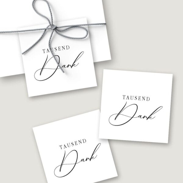 Erstellt im Handumdrehen wunderschöne Geschenkanhänger oder -Aufkleber, die ihr ganz individuell beschriften könnt – entweder als Anhänger verwendet oder als Aufleger, um sie auf  kleine quadratische Gastgeschenk-Päckchen zu kleben.