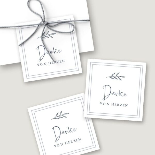 Erstellt im Handumdrehen wunderschöne Geschenkanhänger oder -Aufkleber, die ihr ganz individuell beschriften könnt – entweder als Anhänger verwendet oder als Aufleger, um sie auf  kleine quadratische Gastgeschenk-Päckchen zu kleben.
