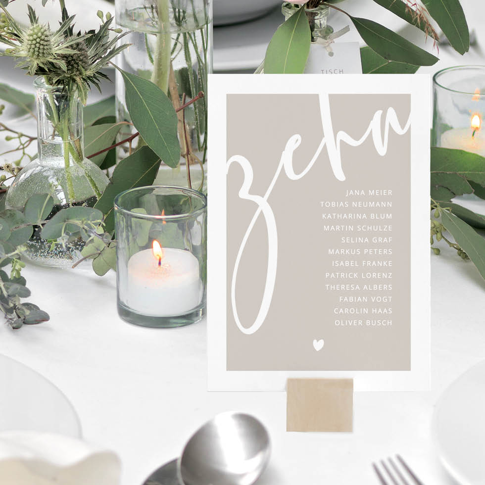 Perfekt, um die Tischkarten in einem Kartenhalter oder Rahmen auf den Tisch zu stellen: