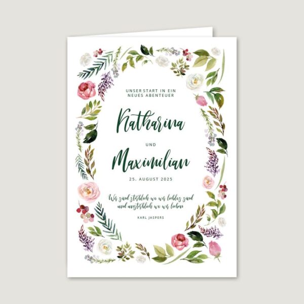 Erstellt euren individuelles Trauheft mit eurem Trauablauf auf der Innenseite oder nutzt den Umschlag, um ihn mit selbst gedruckten Einlegern zu ergänzen.