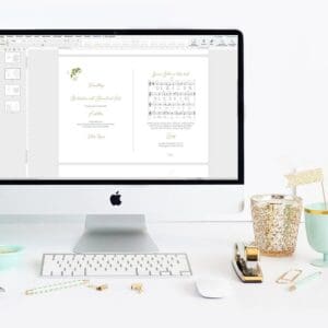 Gestaltet einen wunderschönen Kirchenheft Umschlag oder 4-seitiges Trauheft – zum Downloaden und Selberdrucken oder hochwertig auf besonderes Papier gedruckt.