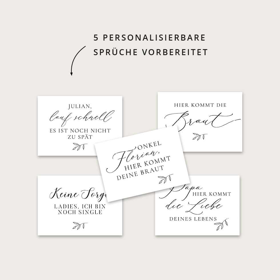 Unsere Schilder könnt ihr ganz einfach mit eurem Lieblingstext beschriften und absolut individuell gestalten. Anschließend wählt ihr, ob ihr es supereinfach selber drucken oder gedruckt bestellen möchtet.