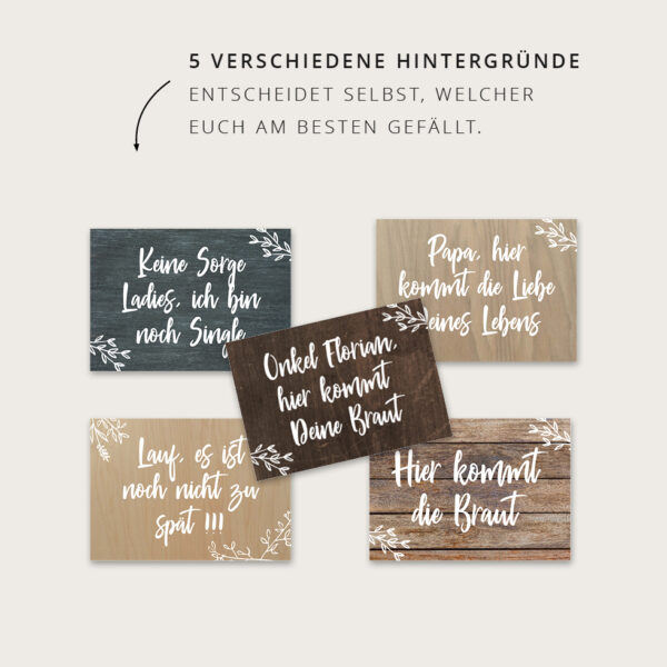 Hier kommt die Braut Schild Holzoptik (personalisierbar)
