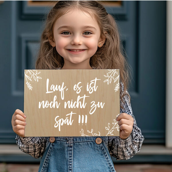 Wir drucken euer Schild auf echtes Fotopapier (260 g/m²) mit matter Oberfläche. Ihr könnt es selbst rahmen oder auf einer Platte aufkleben.