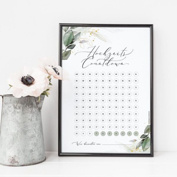 Zählt die Tage bis zur Hochzeit mit einem hübschen Plakat.