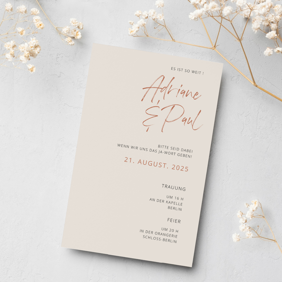 Eure persönliche Einladung wird bei uns individuell perfekt abgestimmt auf euer persönliches Design und das gewählte Papier gedruckt, damit ihr immer das beste Ergebnis erhaltet.