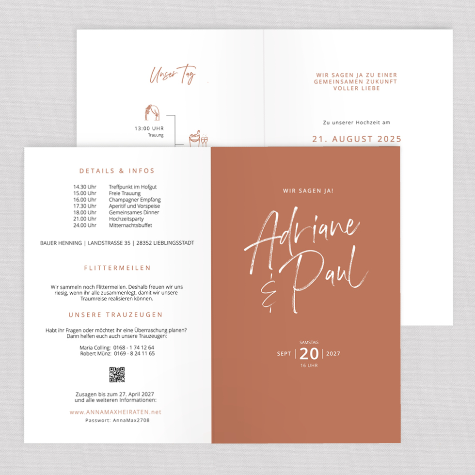 Hochzeitseinladung „Burnt Orange“ Klappkarte