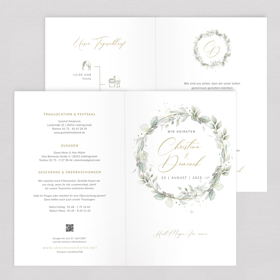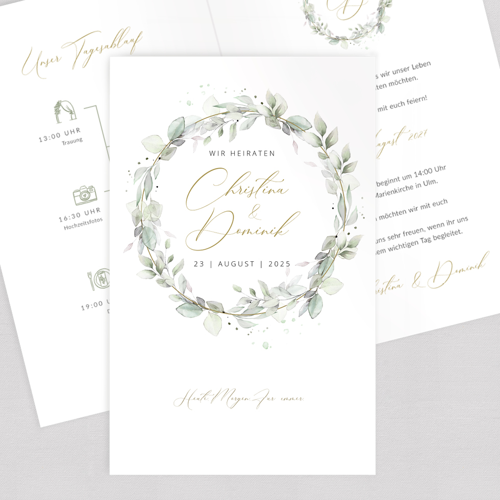 Hochzeitseinladung “Eukalyptuskranz” Klappkarte