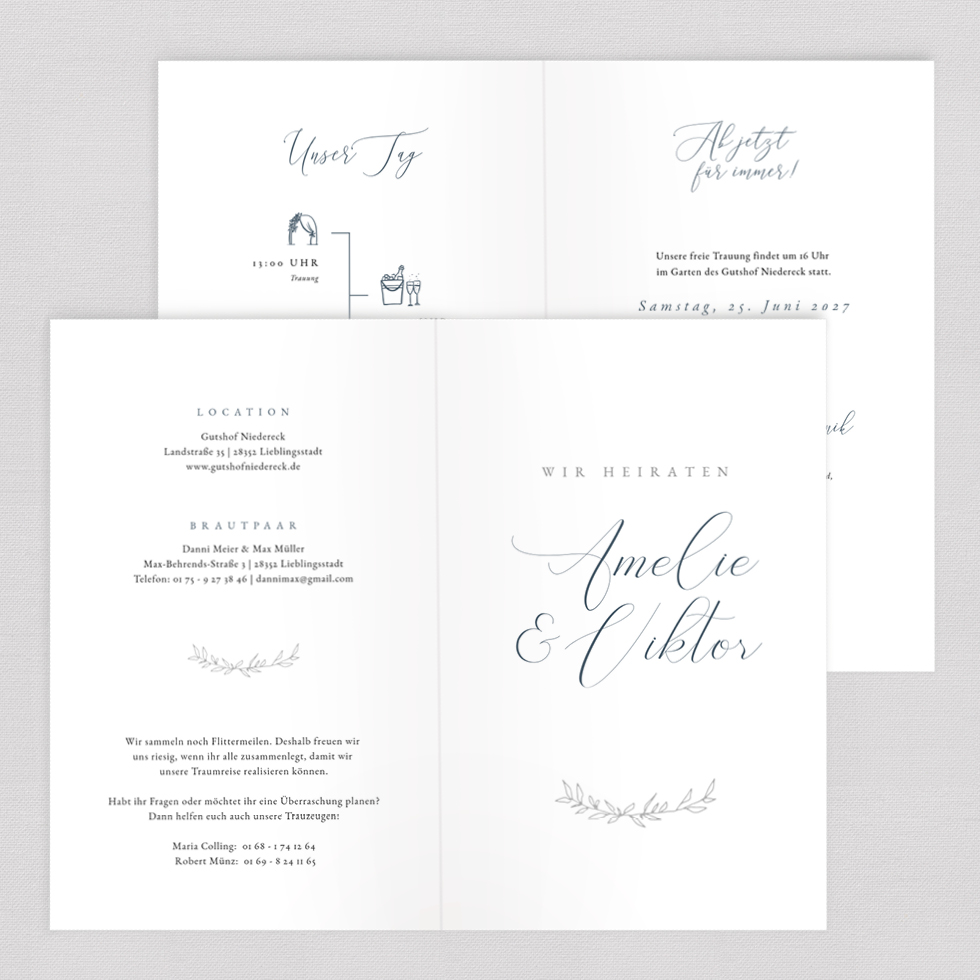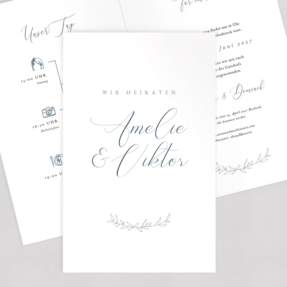 Gestaltet eure Hochzeitseinladung absolut individuell und verändert Schrift, Farben, Hintergrund völlig individuell oder ergänzt weitere Elemente sowie Fotos.