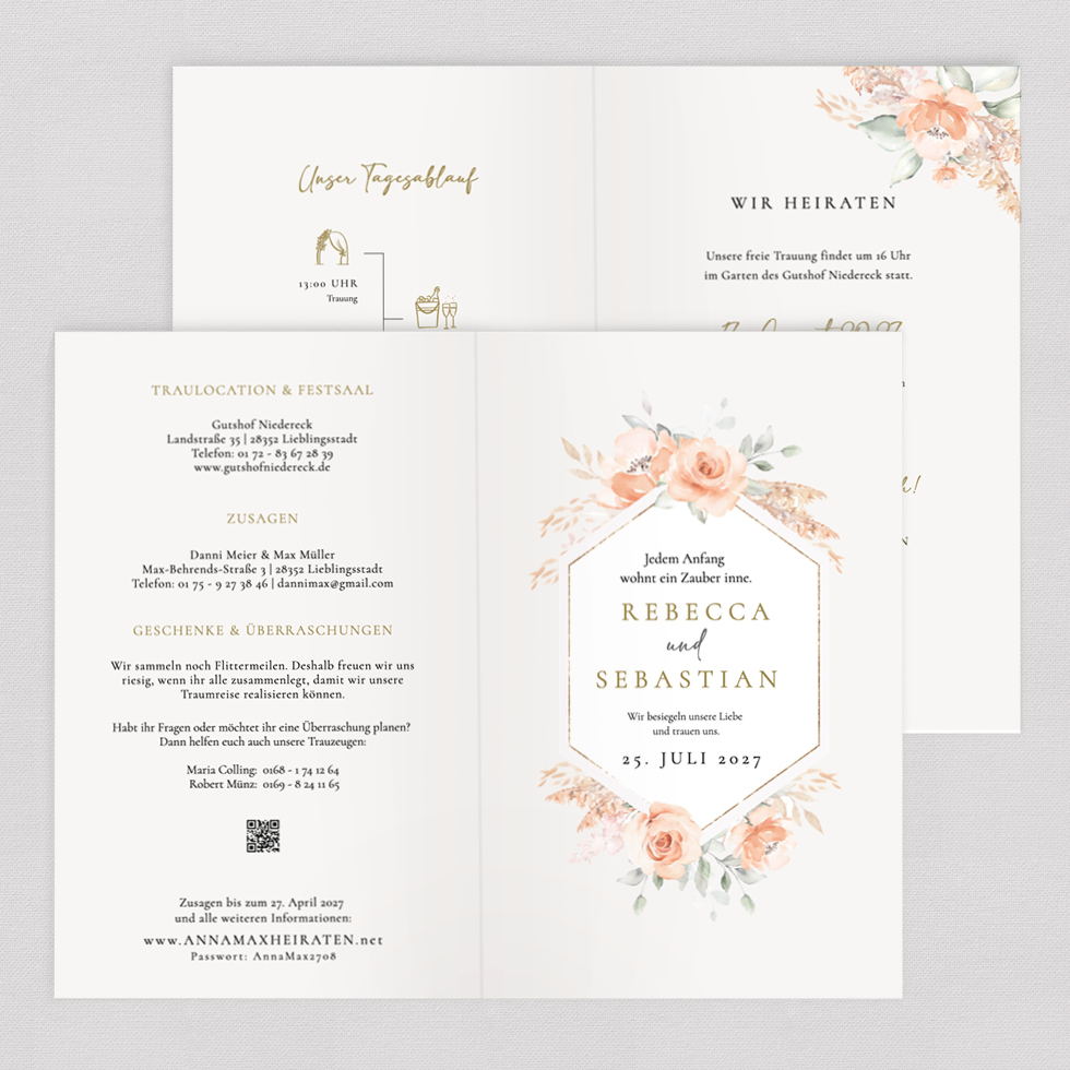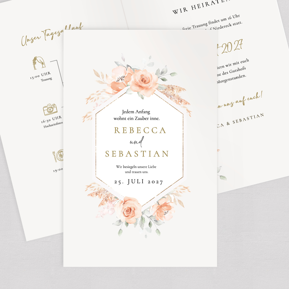 Hochzeitseinladung „Pampas & Flowers“ Klappkarte