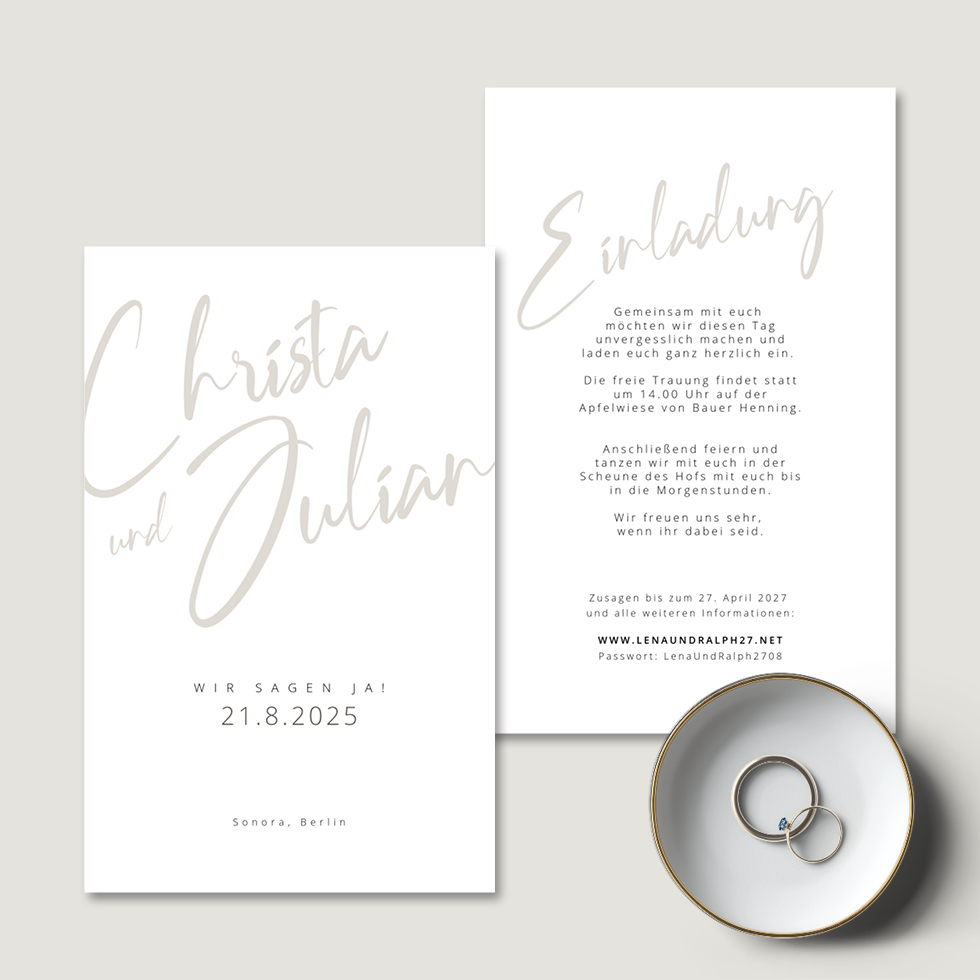 Ihr erhaltet automatisch direkt nach der Bestellung eure Einladung als PDF, JPG und PNG.
