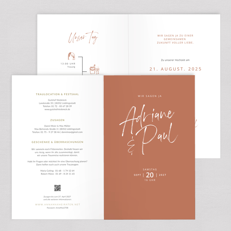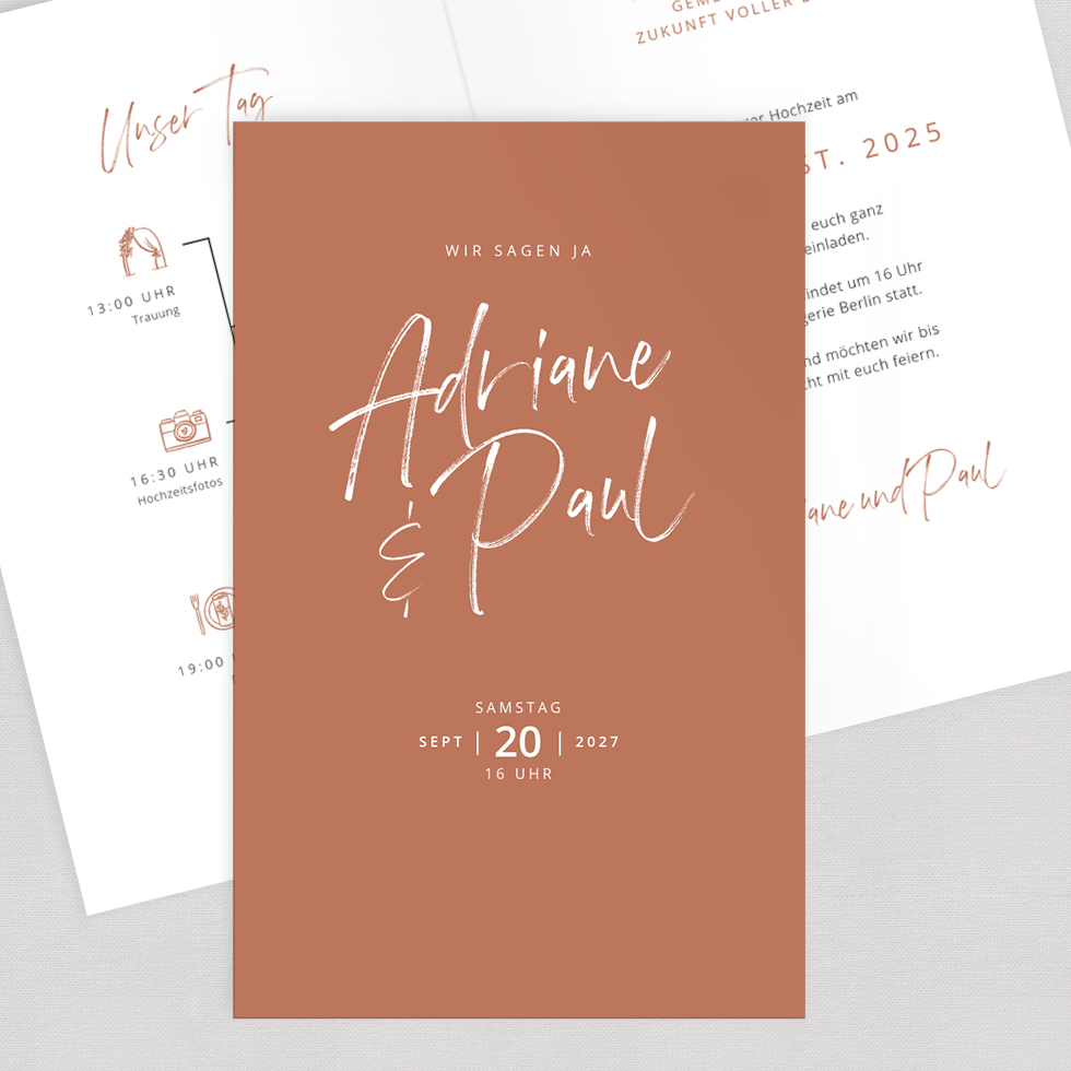 Hochzeitseinladung “Burnt Orange” Klappkarte