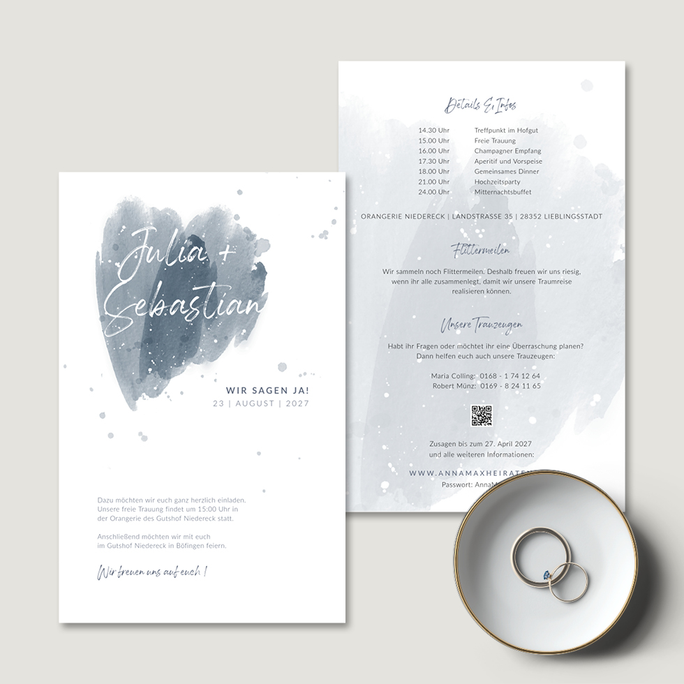 Hochzeitseinladung “Wasserfarbe Blau”