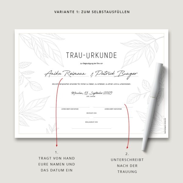 Deshalb ist das Unterzeichnen einer Hochzeitsurkunde wie ein abschließendes Trau-Ritual, das dieses Versprechen bei der standesamtlichen, kirchlichen oder freien Trauung zusätzlich besiegelt und für immer festhält.