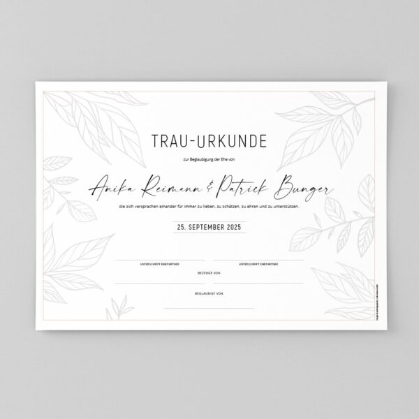 Macht euer Eheversprechen mit einer Trau-Urkunde unvergesslich