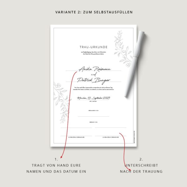 Deshalb ist das Unterzeichnen einer Hochzeitsurkunde wie ein abschließendes Trau-Ritual, das dieses Versprechen bei der standesamtlichen, kirchlichen oder freien Trauung zusätzlich besiegelt und für immer festhält.