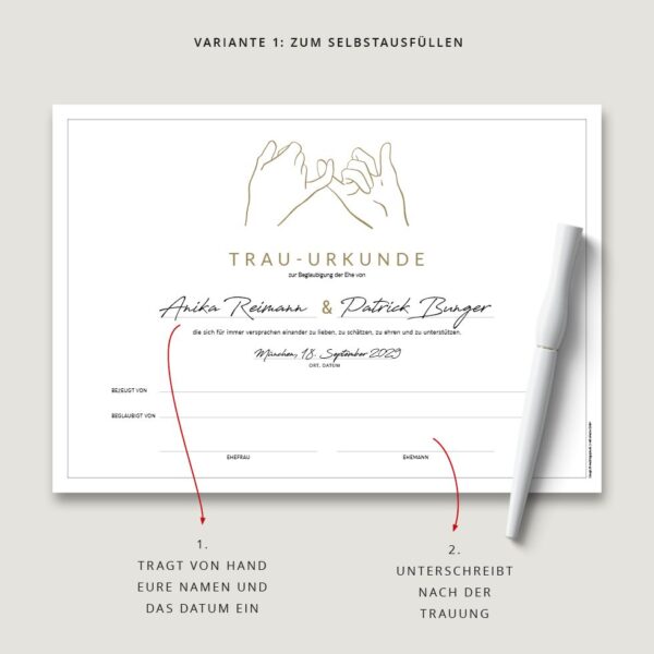Hochzeitsurkunde „Kleiner Finger Schwur“