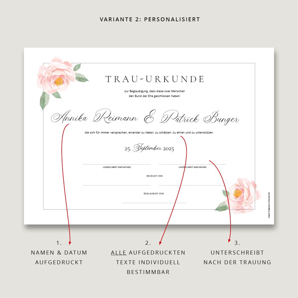 Macht euer Eheversprechen mit einer Trau-Urkunde unvergesslich