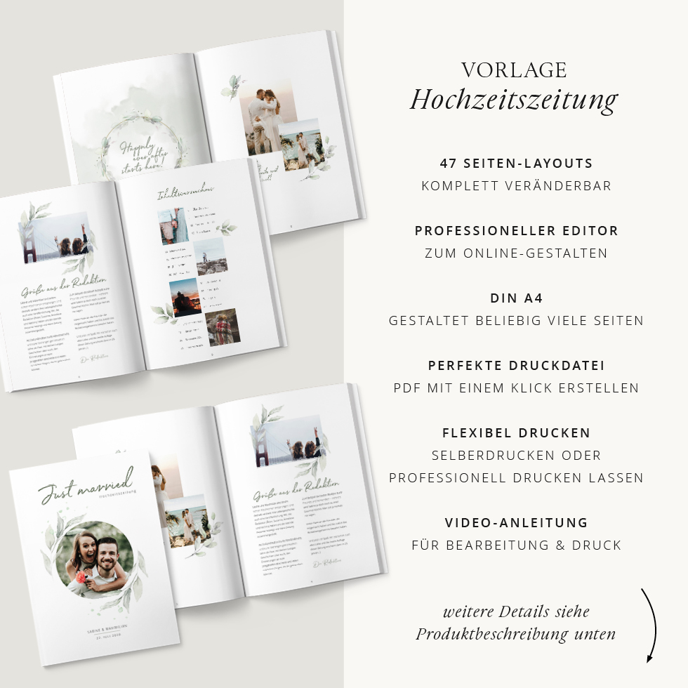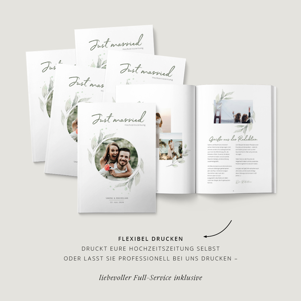 Hochzeitszeitung als PDF zum Selberdrucken erhalten: