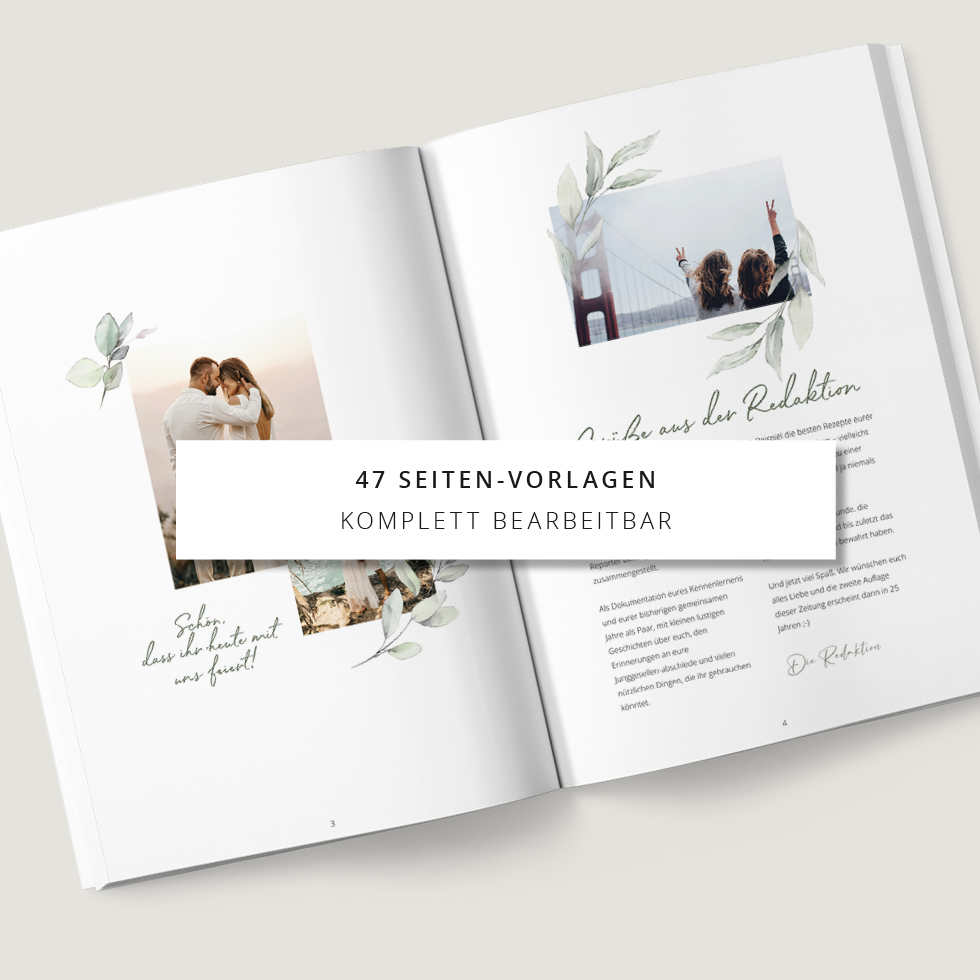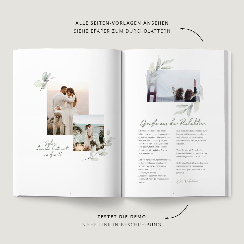 Diese ergibt einen noch professionelleren Magazincharakter für eure Hochzeitszeitung.