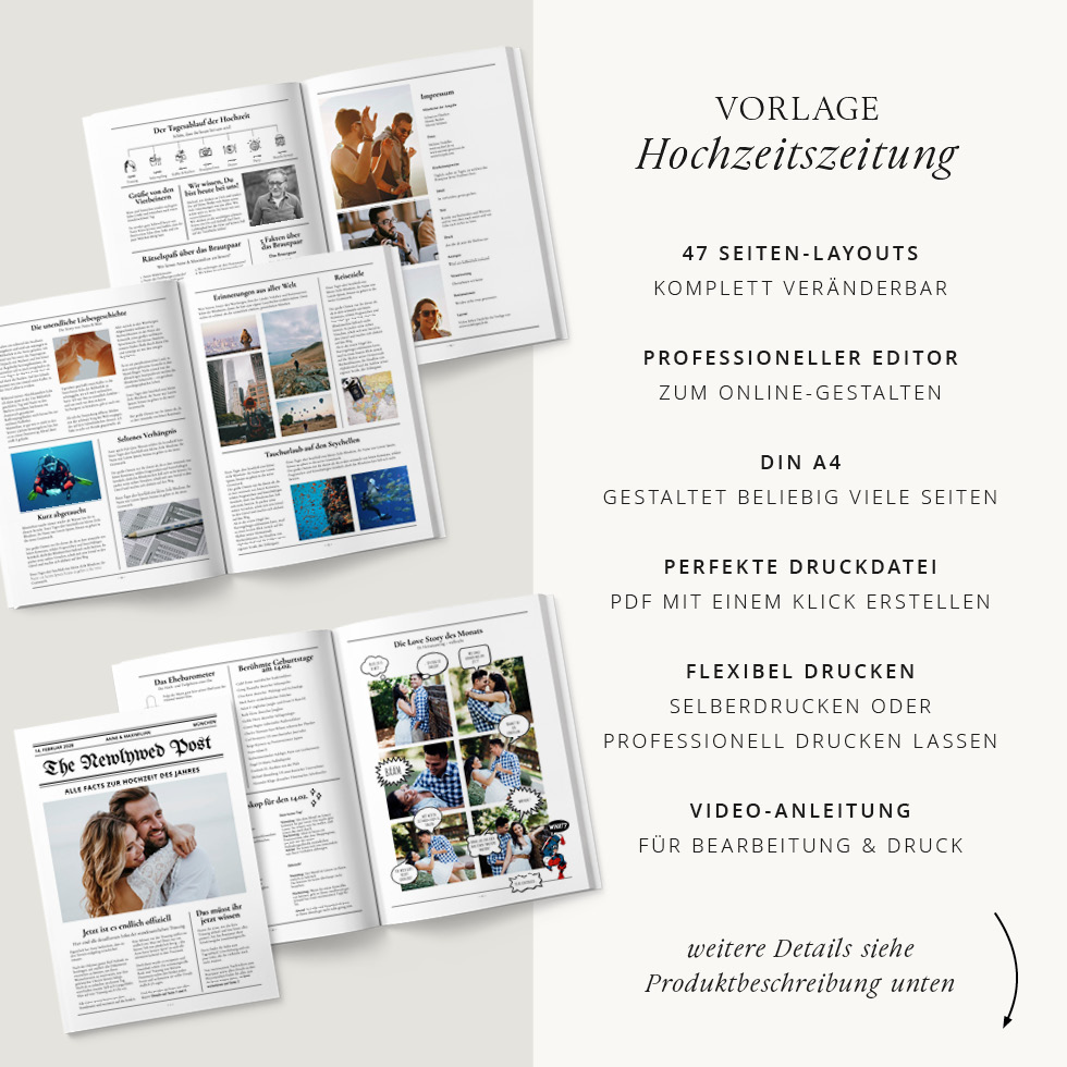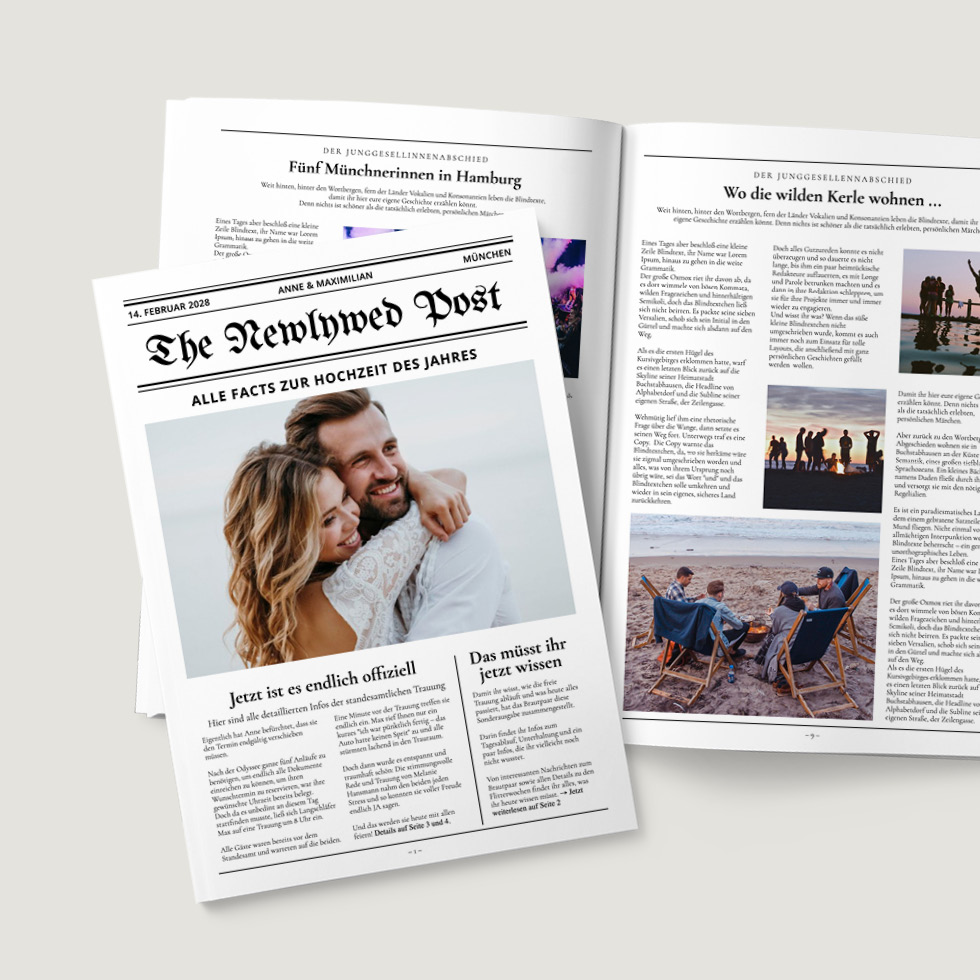 Gestaltet eure individuelle Hochzeitszeitung im Tageszeitung-Look