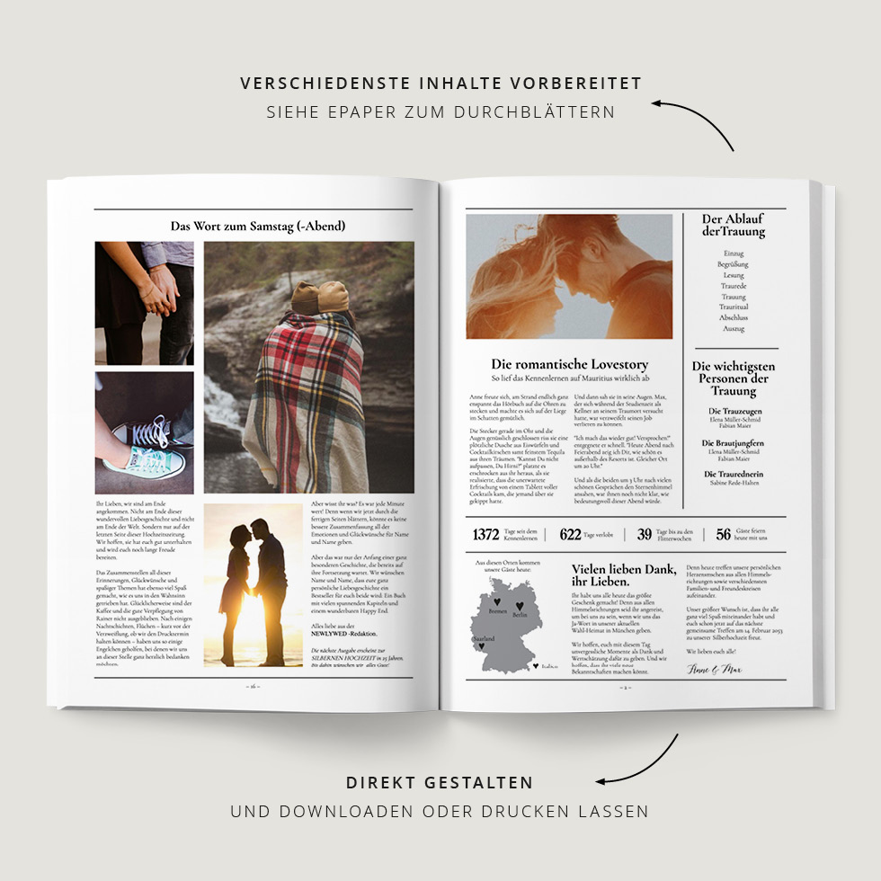 Hochzeitszeitung als PDF zum Selberdrucken erhalten: