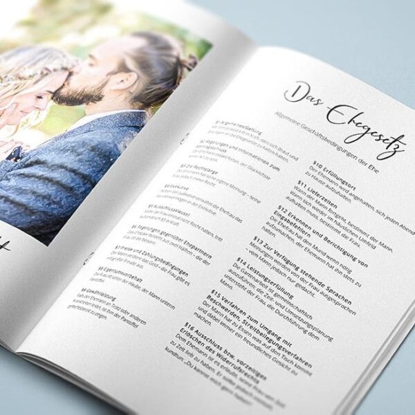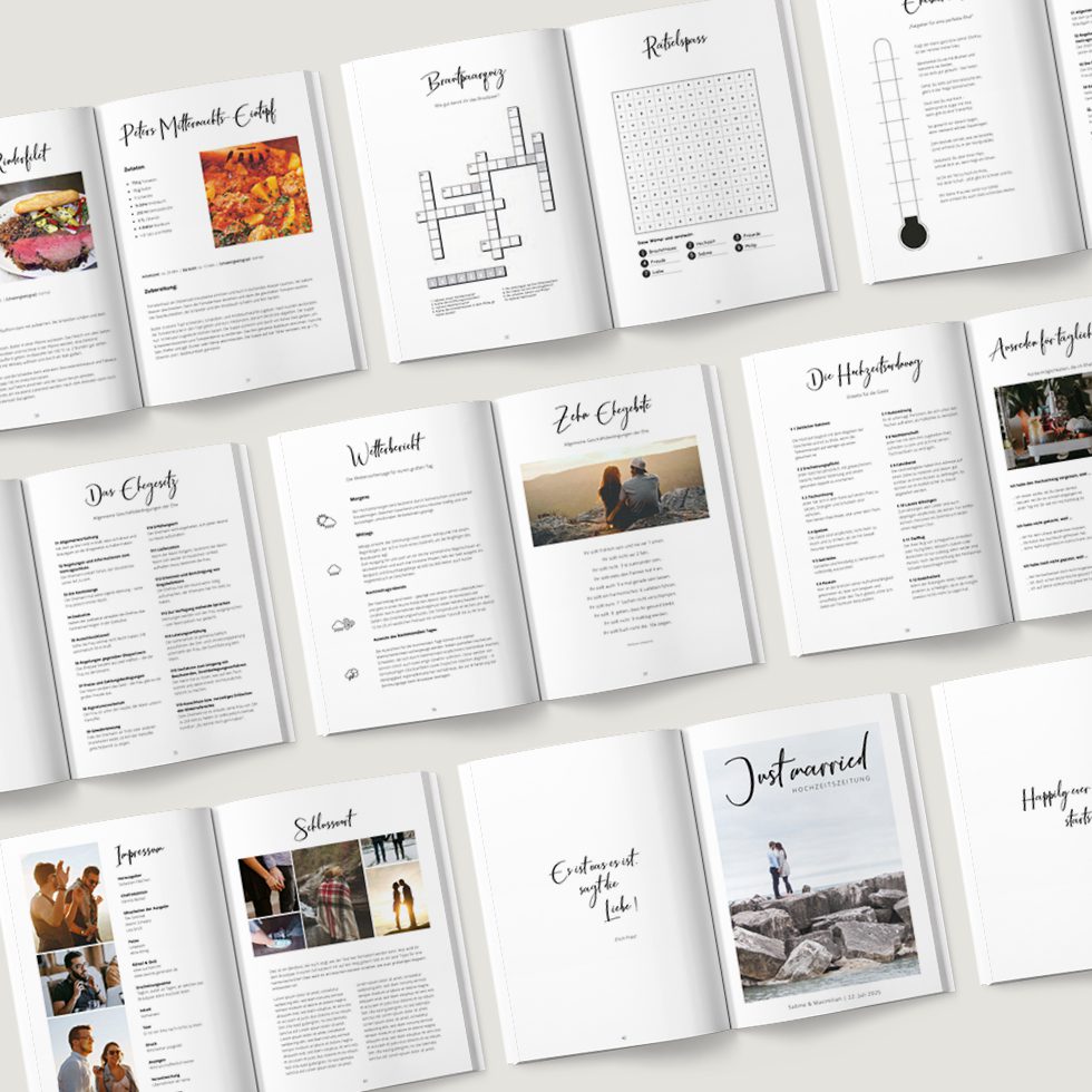 Ihr möchtet eure Hochzeitszeitung mit eurem Text und Bilder fix und fertig professionell gestalten lassen? Wir übernehmen das gerne für euch.