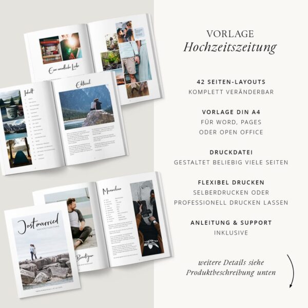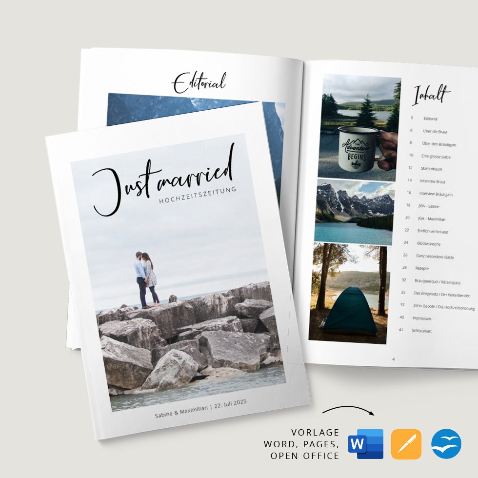 - 41-seitige Hochzeitszeitung Vorlage – optimiert für Microsoft Word, Open Office und Apple Pages