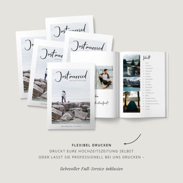 Mit unserer Hochzeitszeitung-Vorlage habt ihr unendlich viele Möglichkeiten für den Druck: