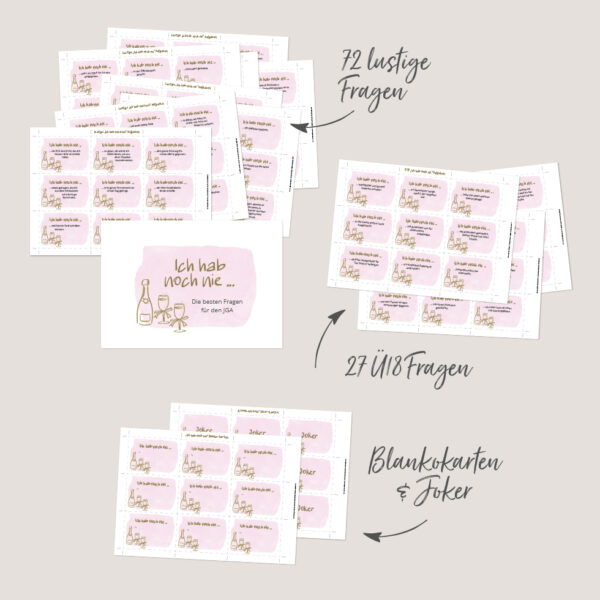 Wält aus allen Aufgaben die Karten aus, die ihr im Spiel ergänzen möchtet: Witzig, Ü18 oder gemischt.