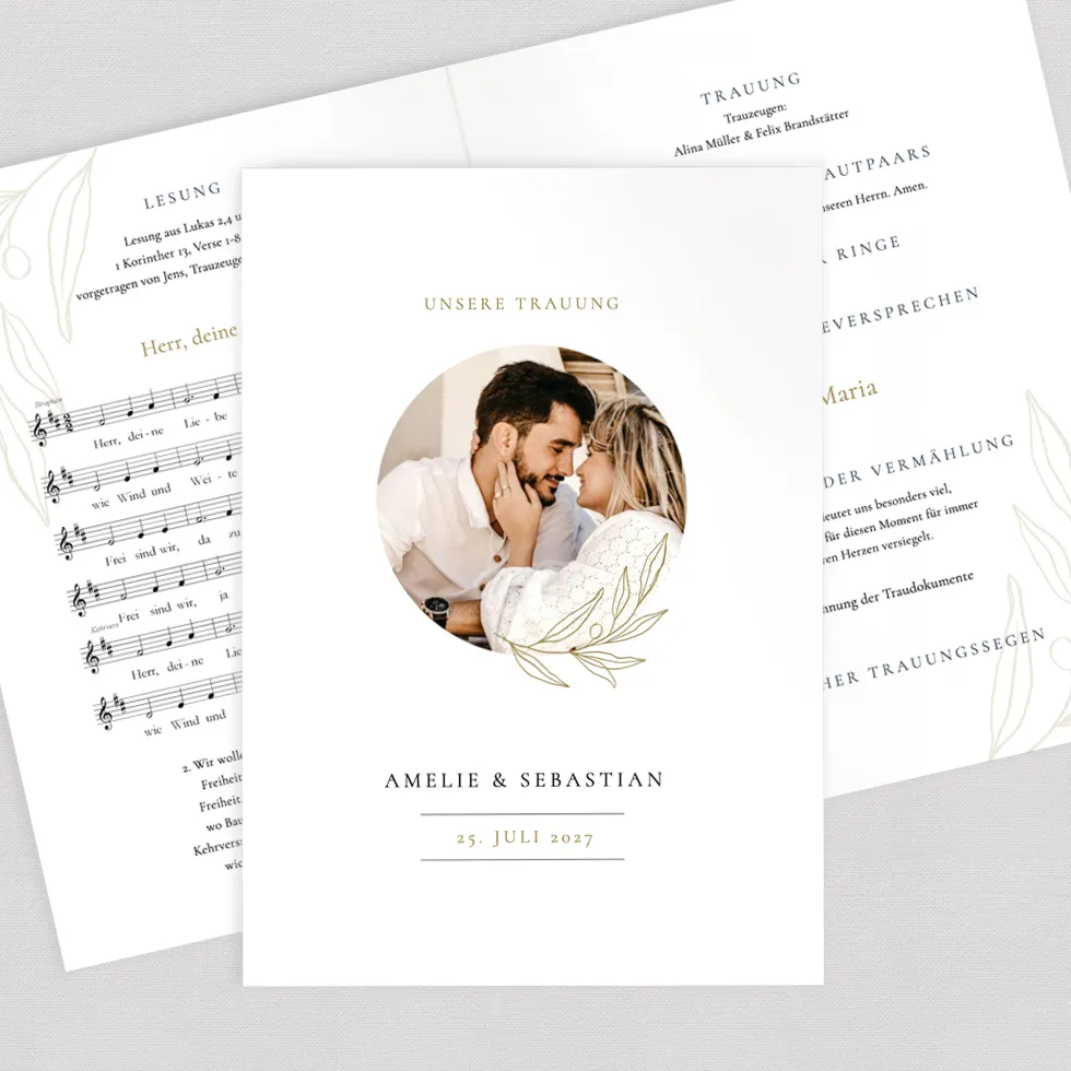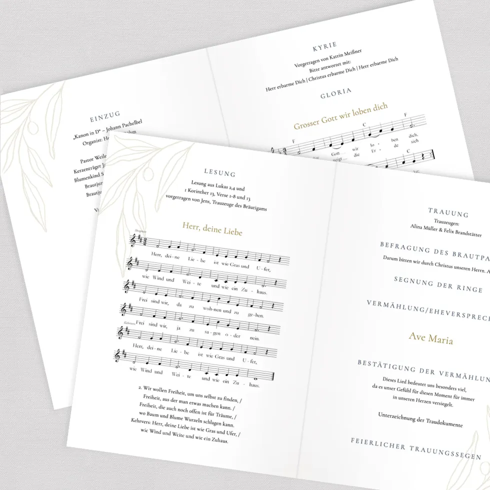 Gestaltet ein traumhaft schönes 12-seitiges Kirchenheft im Online-Konfigurator und erhaltet es als Vorlage zum Downloaden und Selberdrucken oder hochwertig gedruckt und geheftet.