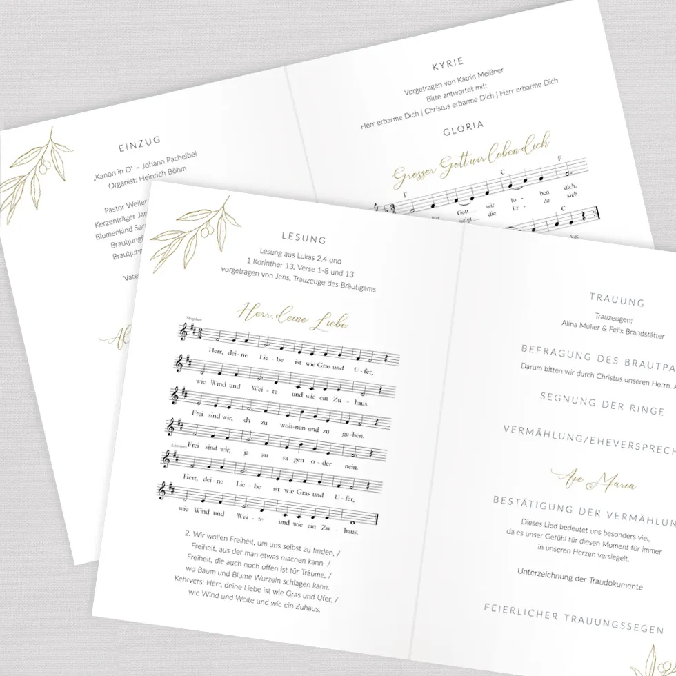 Gestaltet ein traumhaft schönes 12-seitiges Kirchenheft im Online-Konfigurator und erhaltet es als Vorlage zum Downloaden und Selberdrucken oder hochwertig gedruckt und geheftet.