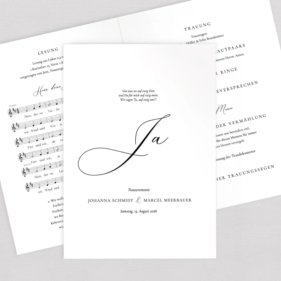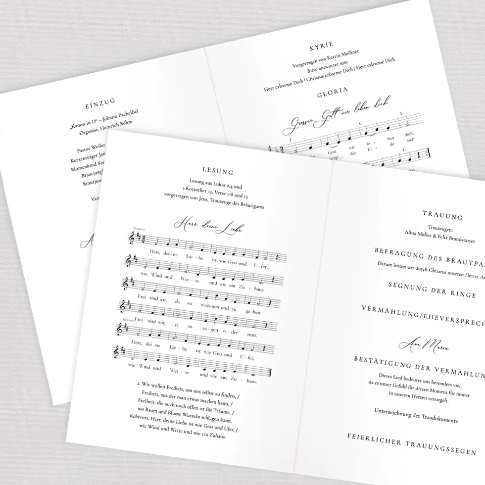 Gestaltet ein traumhaft schönes 12-seitiges Kirchenheft im Online-Konfigurator und erhaltet es als Vorlage zum Downloaden und Selberdrucken oder hochwertig gedruckt und geheftet.