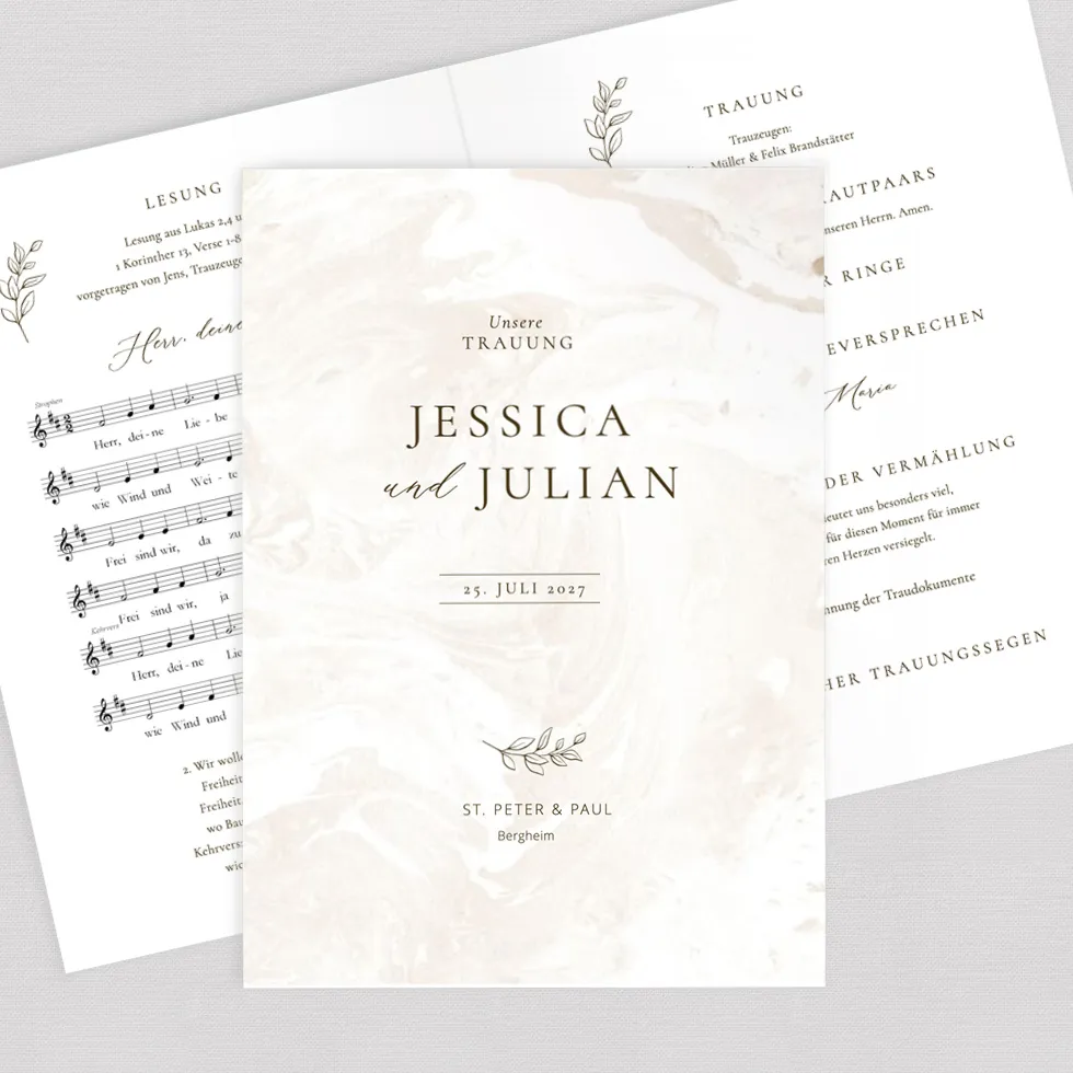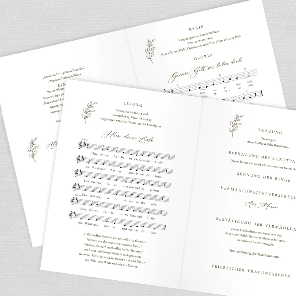 Gestaltet ein traumhaft schönes 12-seitiges Kirchenheft im Online-Konfigurator und erhaltet es als Vorlage zum Downloaden und Selberdrucken oder hochwertig gedruckt und geheftet.