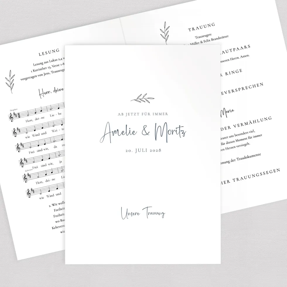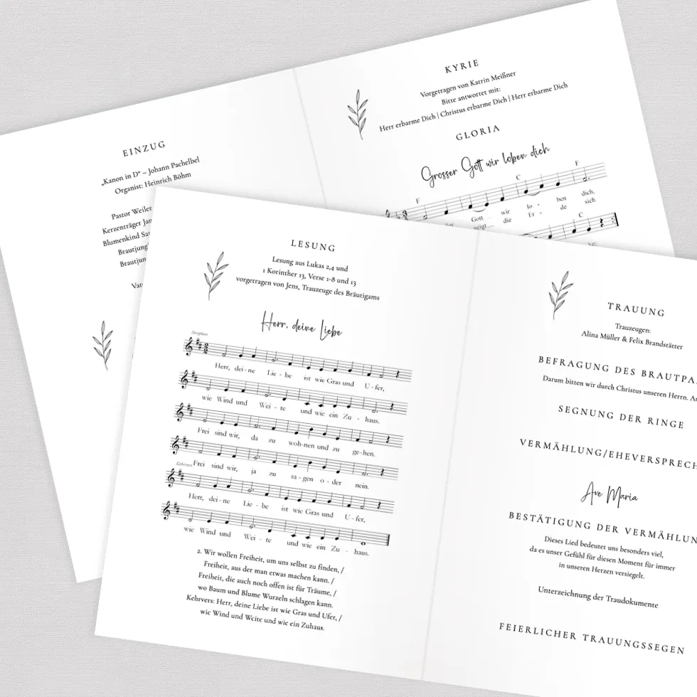 Gestaltet ein traumhaft schönes 12-seitiges Kirchenheft im Online-Konfigurator und erhaltet es als Vorlage zum Downloaden und Selberdrucken oder hochwertig gedruckt und geheftet.