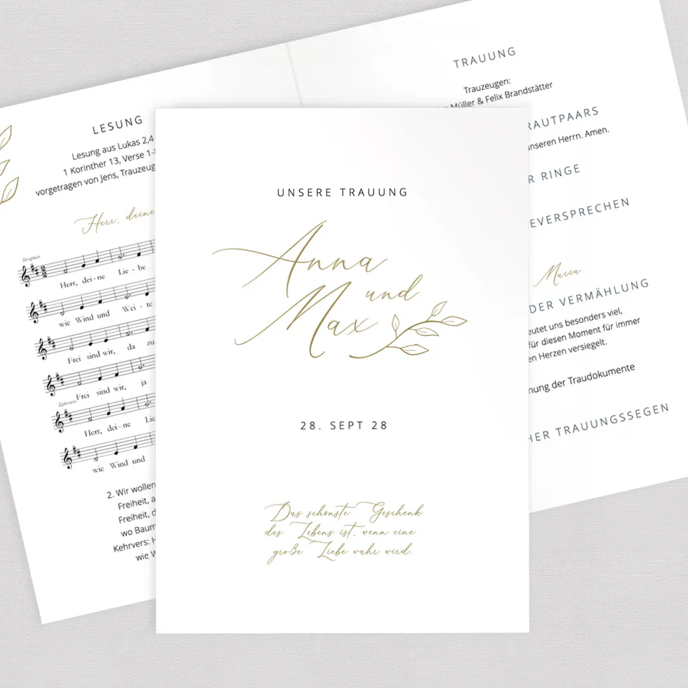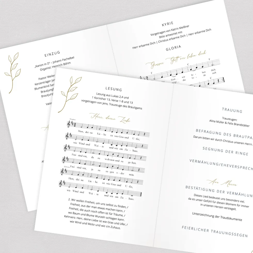 Gestaltet ein traumhaft schönes 12-seitiges Kirchenheft im Online-Konfigurator und erhaltet es als Vorlage zum Downloaden und Selberdrucken oder hochwertig gedruckt und geheftet.