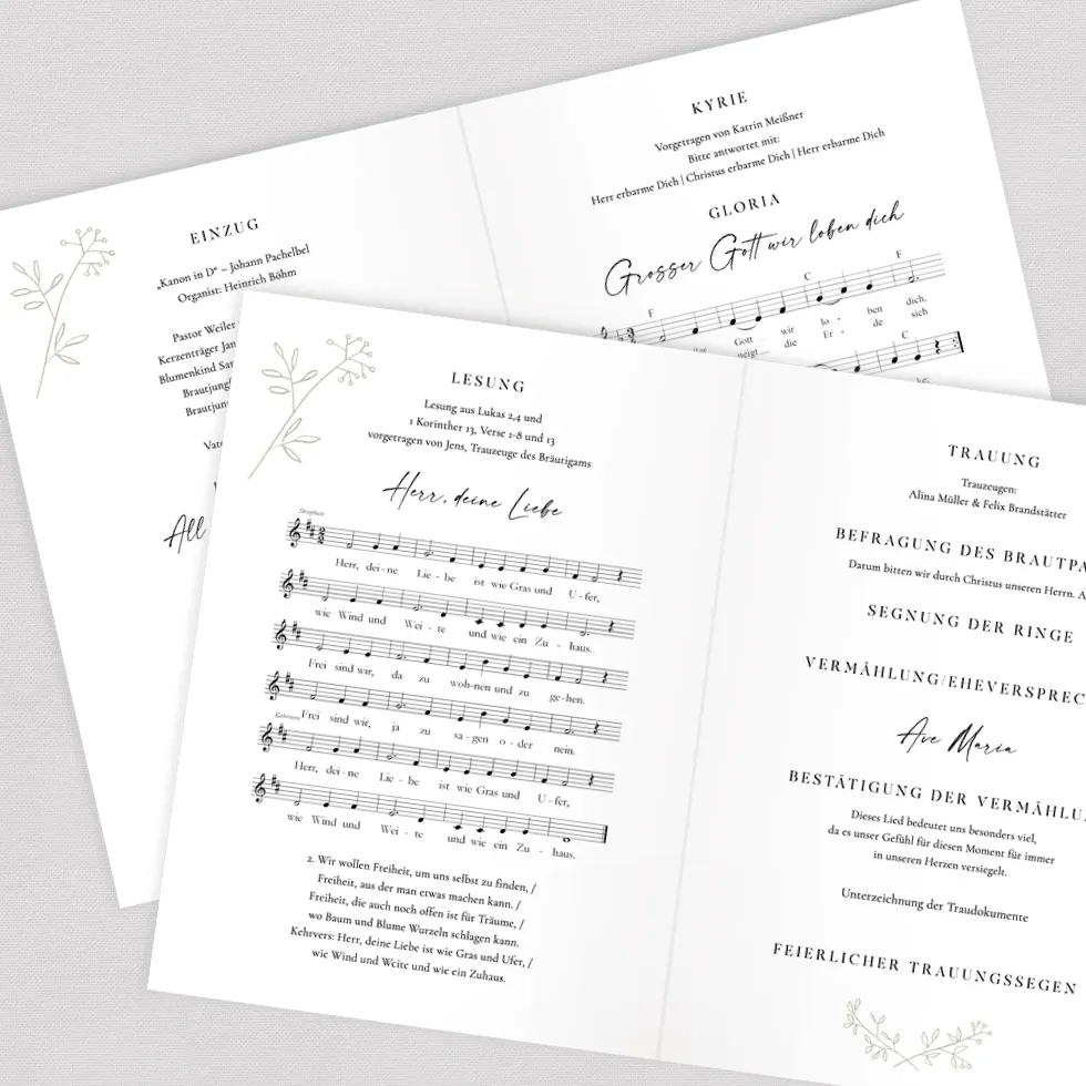 Gestaltet ein traumhaft schönes 12-seitiges Kirchenheft im Online-Konfigurator und erhaltet es als Vorlage zum Downloaden und Selberdrucken oder hochwertig gedruckt und geheftet.