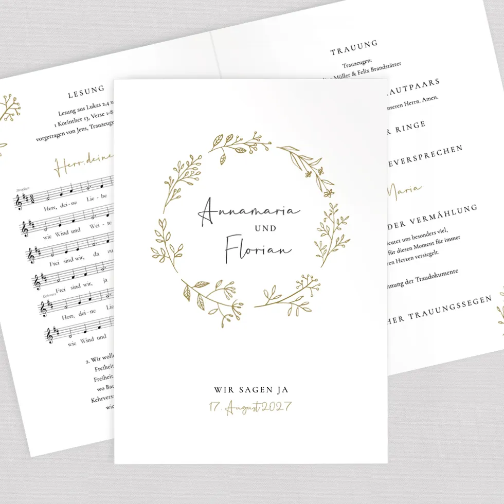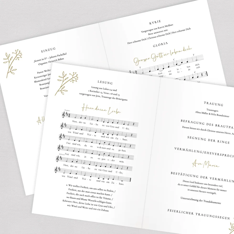 Gestaltet ein traumhaft schönes 12-seitiges Kirchenheft im Online-Konfigurator und erhaltet es als Vorlage zum Downloaden und Selberdrucken oder hochwertig gedruckt und geheftet.