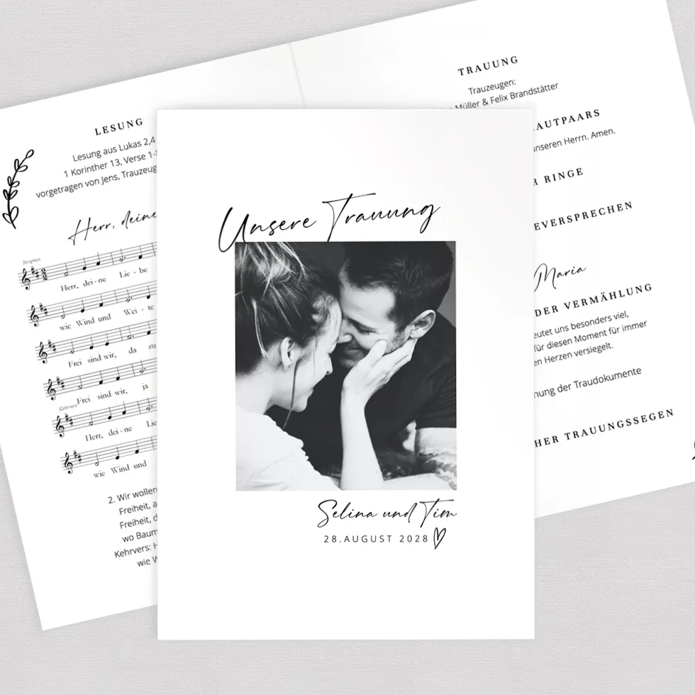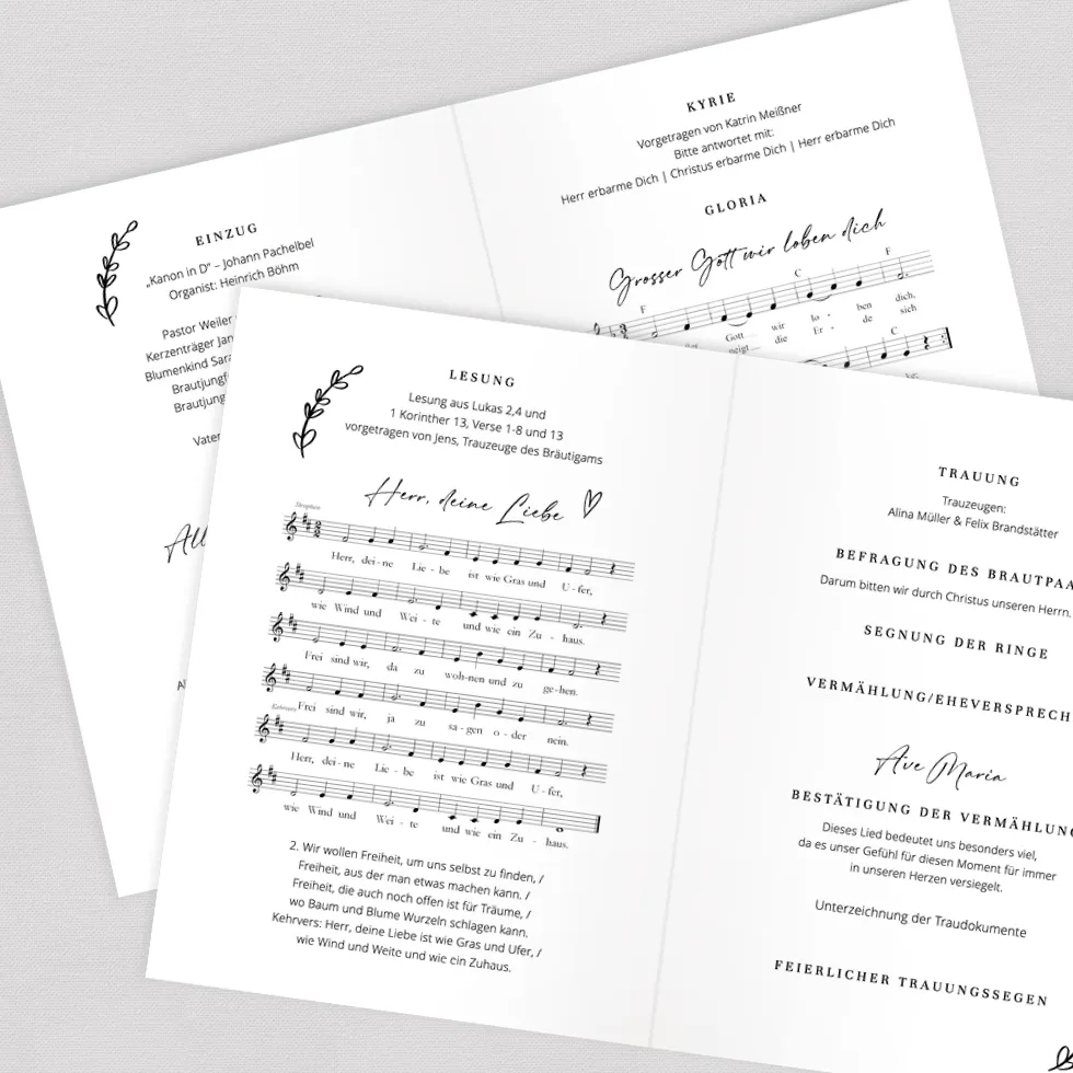 Gestaltet ein traumhaft schönes 12-seitiges Kirchenheft im Online-Konfigurator und erhaltet es als Vorlage zum Downloaden und Selberdrucken oder hochwertig gedruckt und geheftet.