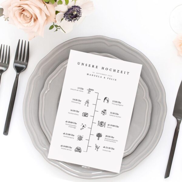 Eure persönliche Tagesablauf Karte wird bei uns individuell perfekt abgestimmt auf euer persönliches Design und das gewählte Papier gedruckt, damit ihr immer das beste Ergebnis erhaltet.