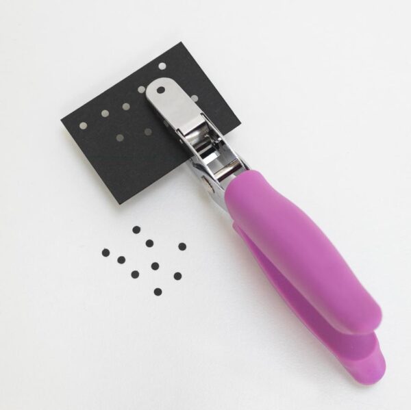 Mit dieser Stanze könnt ihr ruckzuck aus jedem Kärtchen einen Anhänger zaubern. Leichter geht es wirklich nicht, denn mit der Zange könnt ihr das Loch exakt an der gewünschten Stelle platzieren.