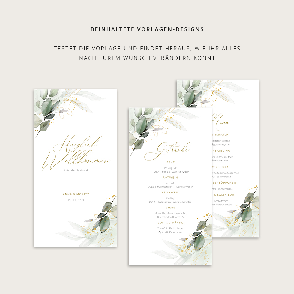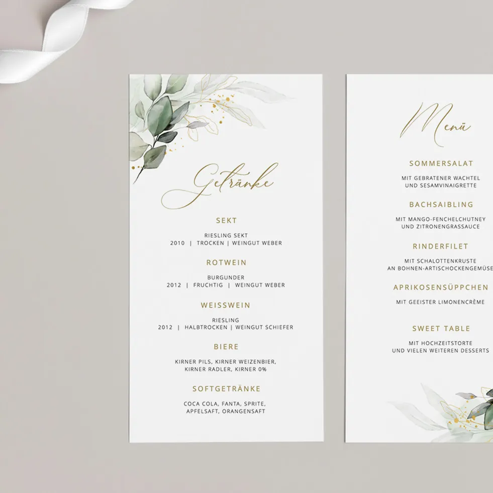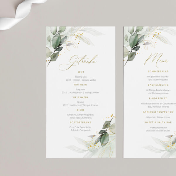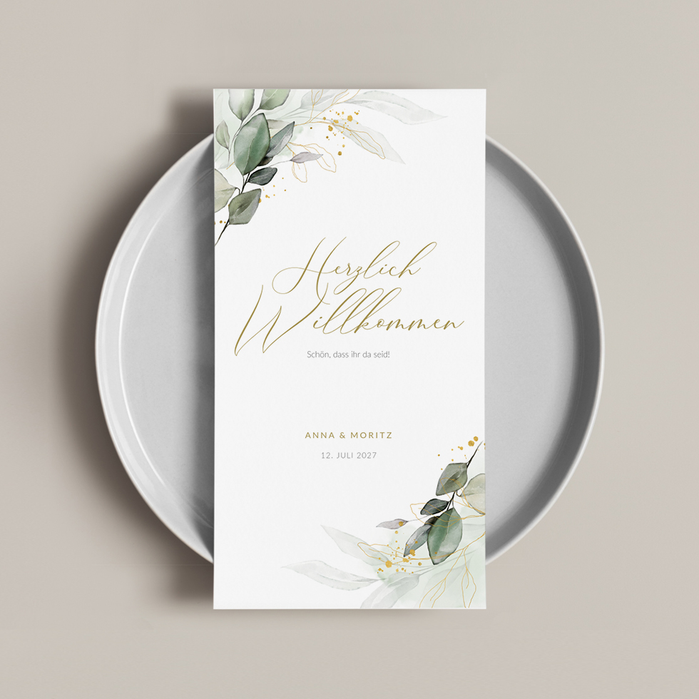 Menükarte „Eukalyptus & Gold“
