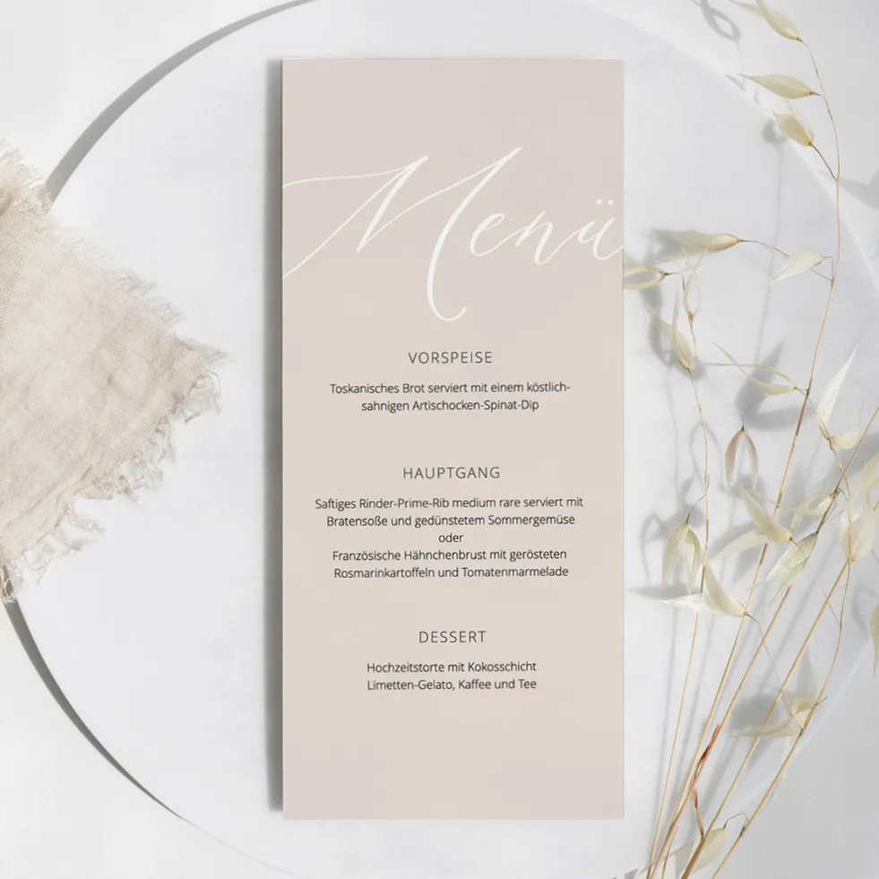 Eure persönliche Menükarte wird bei uns individuell perfekt abgestimmt auf euer persönliches Design und das gewählte Papier gedruckt, damit ihr immer das beste Ergebnis erhaltet.