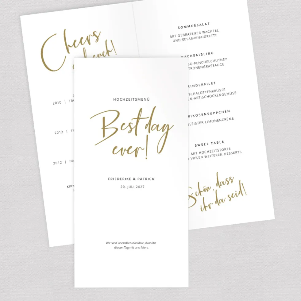Eure persönliche Menükarte wird bei uns individuell perfekt abgestimmt auf euer persönliches Design und das gewählte Papier gedruckt, damit ihr immer das beste Ergebnis erhaltet.