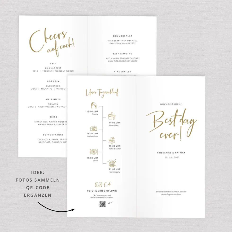 Der Clou: Wenn ihr möchtet, könnt ihr sogar den Tagesablauf und einen QR-Code zum Fotosammeln ergänzen