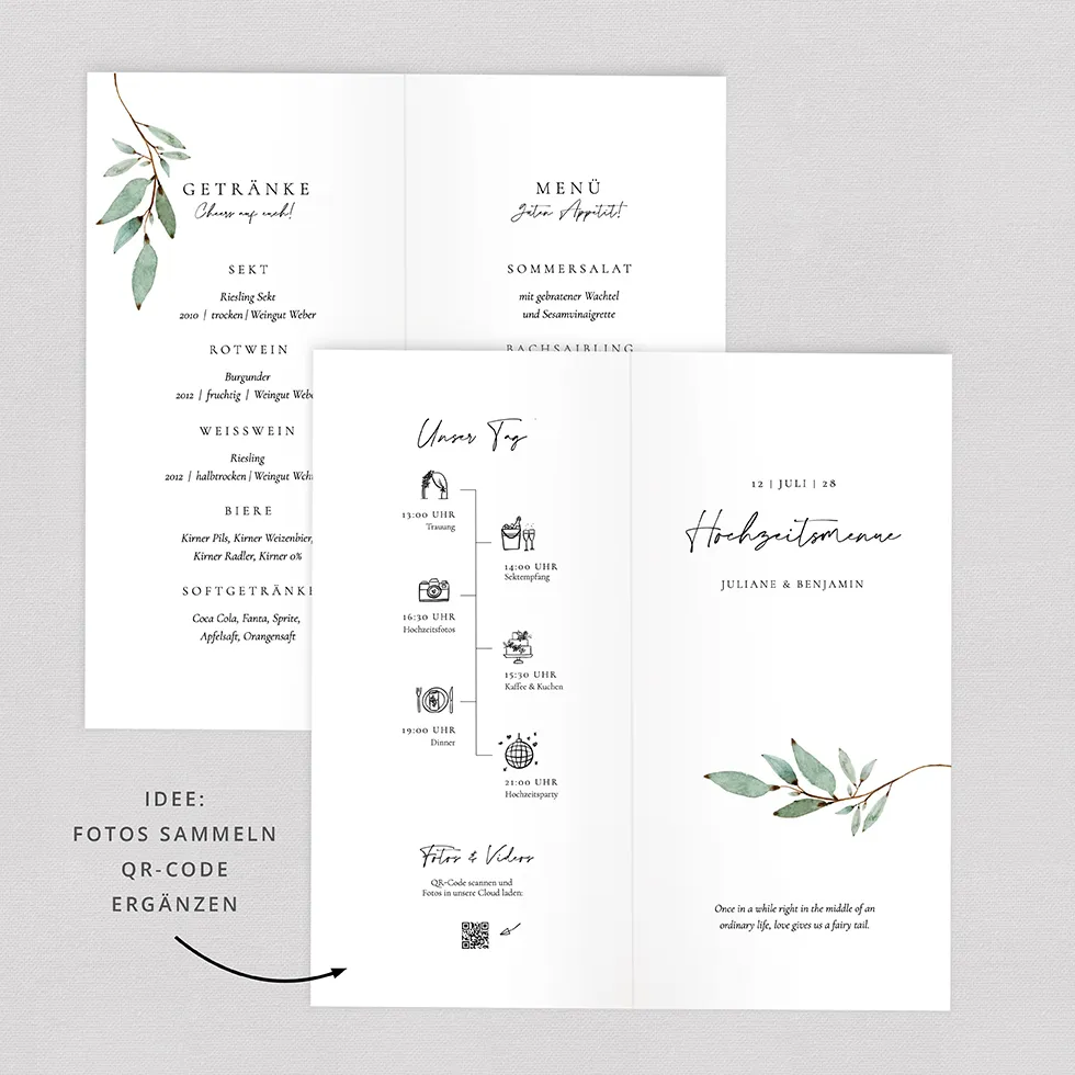Der Clou: Wenn ihr möchtet, könnt ihr sogar den Tagesablauf und einen QR-Code zum Fotosammeln ergänzen