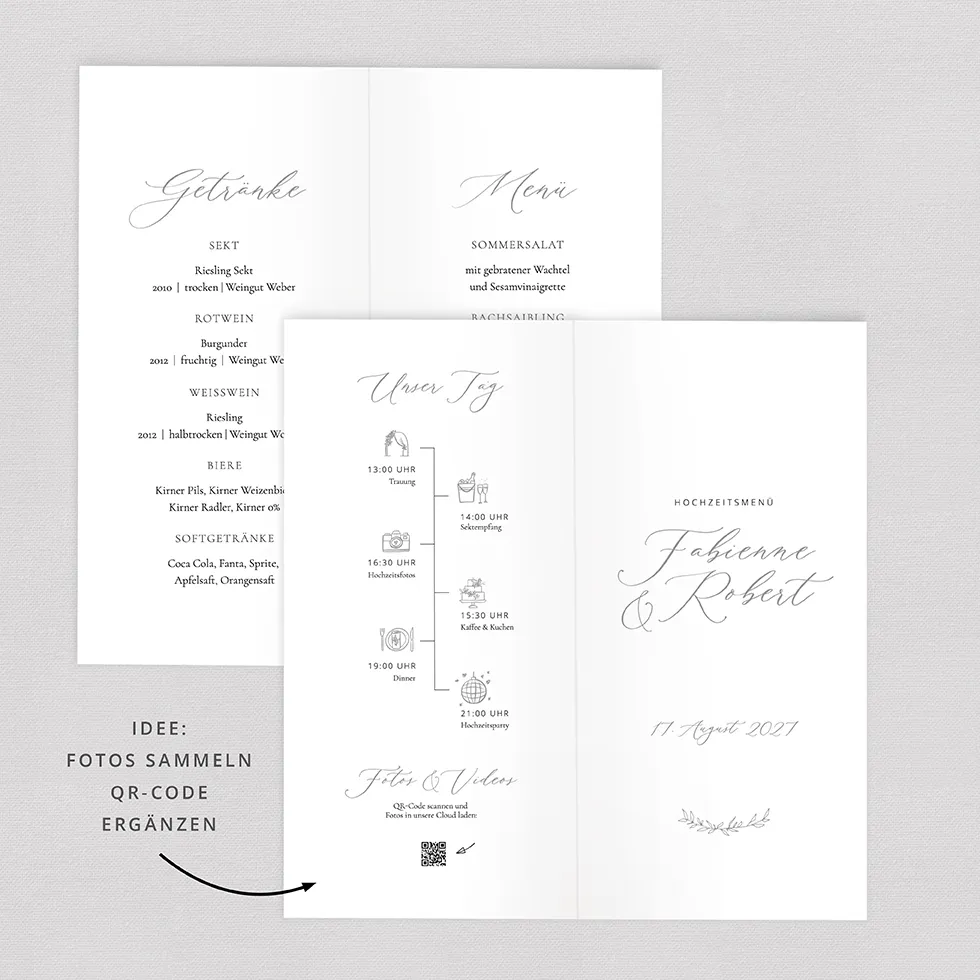 Der Clou: Wenn ihr möchtet, könnt ihr sogar den Tagesablauf und einen QR-Code zum Fotosammeln ergänzen