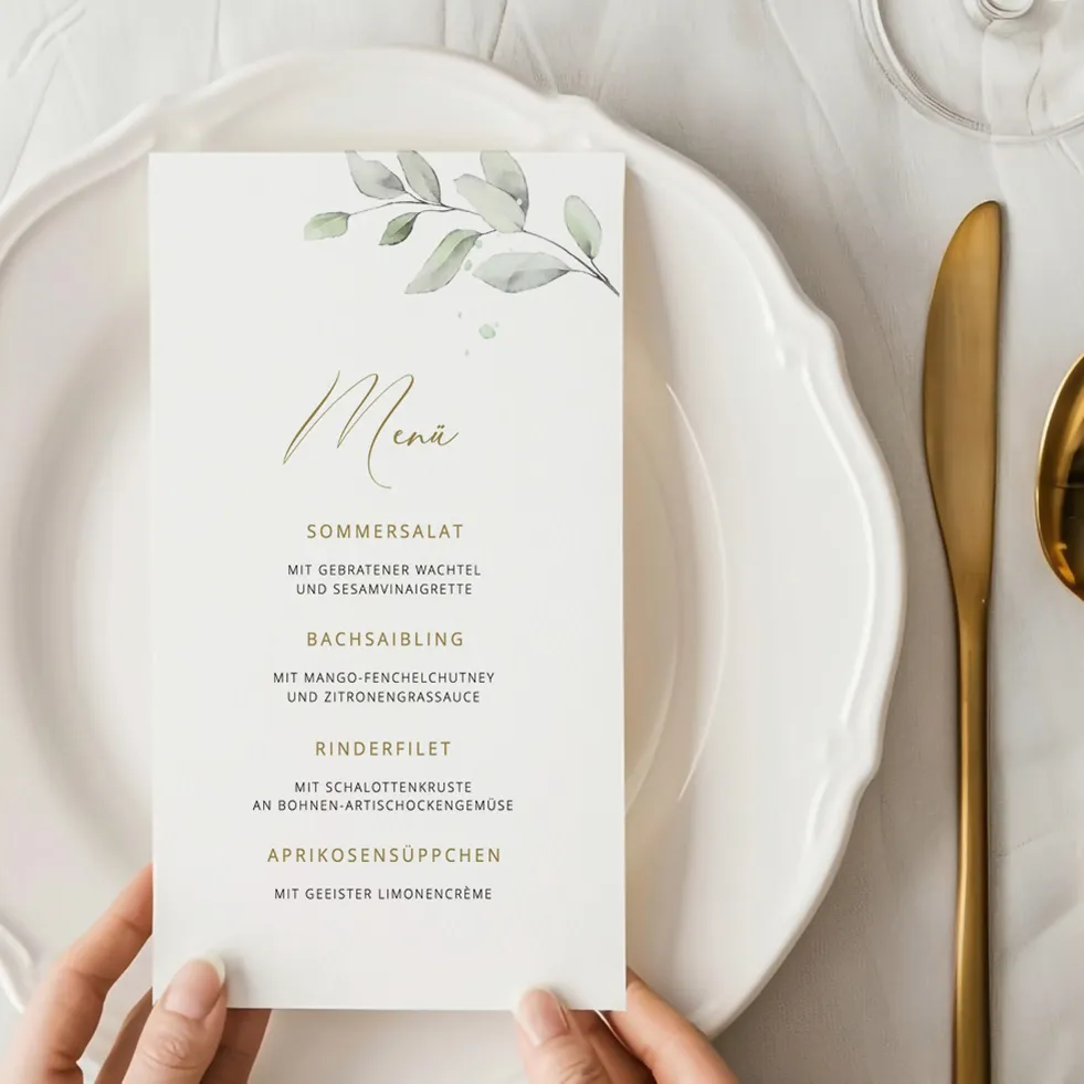Optional könnt ihr eure Menükarten auch als Download (PDF, JPG und PNG in hochauflösender Qualität) zum Selberdrucken erhalten und mit eurem Heimdrucker, im Copyshop oder im Druck-Shop drucken.