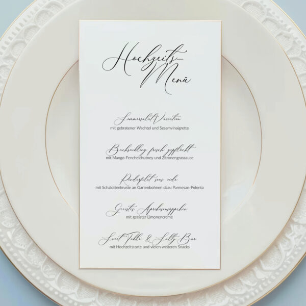 Eure persönliche Menükarte wird bei uns individuell perfekt abgestimmt auf euer persönliches Design und das gewählte Papier gedruckt, damit ihr immer das beste Ergebnis erhaltet.