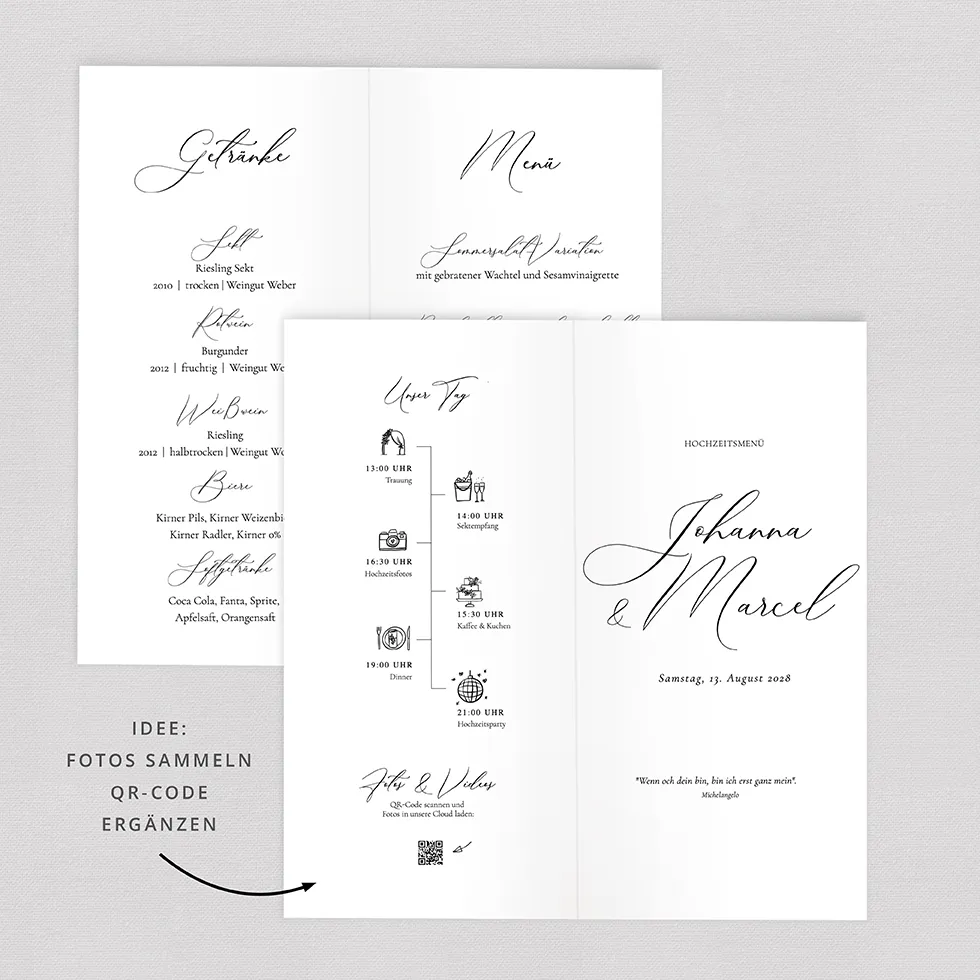Der Clou: Wenn ihr möchtet, könnt ihr sogar den Tagesablauf und einen QR-Code zum Fotosammeln ergänzen